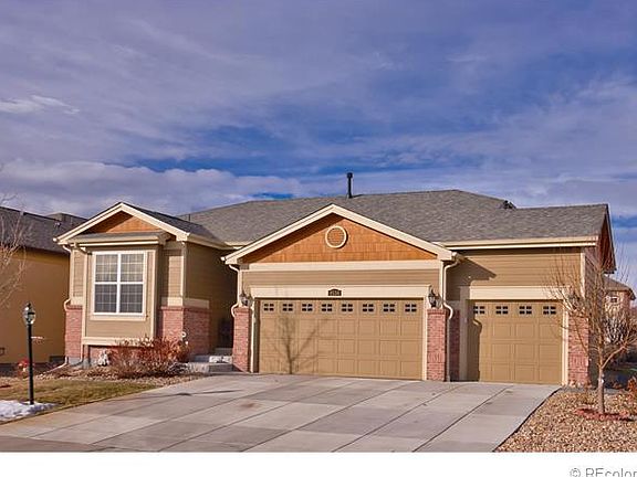 Gorgeous ranch home featuring a gourmet kitchen with slab granite counters, stainless appls, raised panel cabinets with crown molding, gas cook top, double ovens & designer tile backsplash. Tons of natural light & upgraded carpet throughout! Luxurious 4-pc master suite with tile floors & huge shower w/ seat, oil-rubbed bronze fixtures & solid surface counters. Large covered patio overlooking professionally landscaped yard! Full unfinished basement offers tons of expansion possibilities - think of the wet bar, entertainment area you always wanted or how about a wine cellar? Heritage Todd Creek is a 55+ golf course community featuring a grand 33,000 sqft clubhouse offering activities and clubs coordinated by an on-site lifestyle director. Stop by the clubhouse with restaurant, fitness room, library, indoor & outdoor swimming pools, tennis, billiard room, & a grand ballroom!