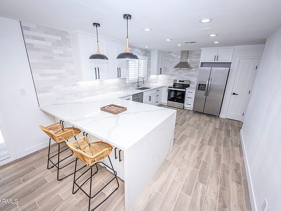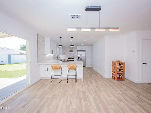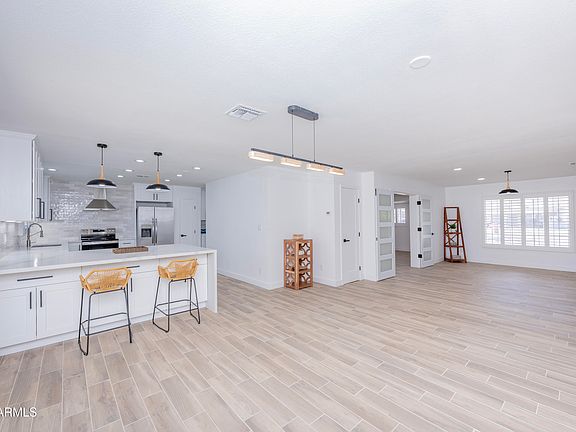What a gem! This 5 bedroom, 2.5 bath Old Town Scottsdale residence boasts an open floor plan on an oversized lot with premium upgrades throughout. The chef-inspired kitchen dazzles with abundant custom cabinetry, stunning quartz waterfall countertops, a pantry, and a full suite of stainless steel appliances. Inside enjoy elegant wood plank porcelain tile flooring throughout, sophisticated upgraded lighting, five ceiling fans, and exquisite tilework with designer backsplashes in the bathrooms and laundry room. The resort-style backyard oasis is an entertainer's dream: a diving pool, covered patio with matching wood plank tile, lush grassy play area, artificial turf with putting green, charming gazebo, storage shed, and RV gate. No HOA and moments from Old Town's dining and entertainment!