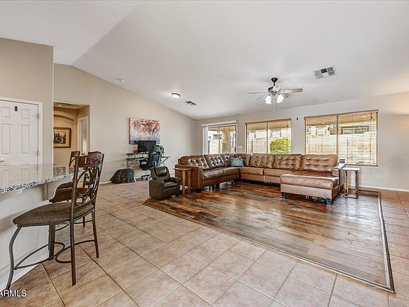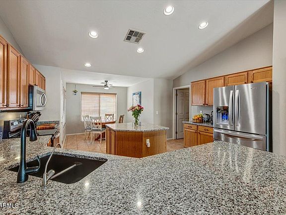 Tucked away in the Eastridge Community, this property with a great room floor plan, three bedrooms, and a resort-like backyard awaits you! The idyllic kitchen offers a center island, eat-in area, newer Granite countertops (01/2024), and SS appliances. The generously sized primary suite is split from the secondary bedroom. The multi-purpose backyard features a rock waterfall and pool with plenty of space for children's play equipment and adult spaces. RV gate and north/south exposure.
