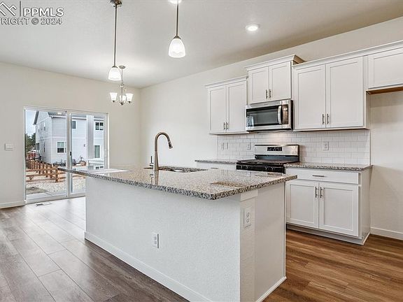Welcome to our Finch, 3-bedroom, 2.5 bath layout. This thoughtfully planned home features a large kitchen island, with granite countertops and subway tile backsplash, that looks into the dining and family rooms and the alluring entry with an open staircase. The upper-level feature 3 well sized bedrooms, a large laundry room and an ample secondary bathroom. Enjoy the large primary suite with attached 4-piece bathroom and walk-in closet. The home site features front yard landscaping, with automated sprinklers, rear yard fencing included, that backs to an amazing park for everyone. There are many included features such as our smart home package, full A/C, tankless water heater, stainless steel appliances, and much more! Located in the Fountain/Fort Carson school district 8, you'll want to visit with us soon!