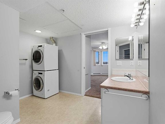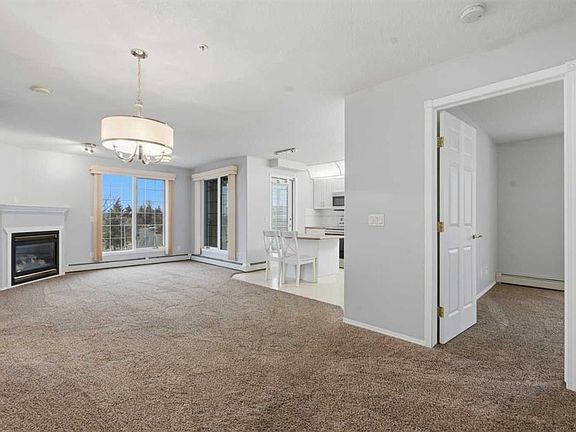 END UNIT | 55+ BUILDING WITH POOL, HOT TUB, WORKSHOP, CAR WASH & MORE | 2 BEDROOMS & 2 FULL BATHS | CENTRAL AIR CONDITIONING | 2 UNDERGROUND PARKING STALLS | QUICK POSSESSION AVAILABLE This beautifully maintained corner unit combines exceptional natural light, generous indoor living and the comfort of an active adult building known for outstanding amenities. A bright open floor plan creates effortless flow with defined spaces for dining, relaxing and entertaining. Large windows and extra corner exposure enhance the inviting living room anchored by a gas fireplace for cozy evenings. The neutral white kitchen provides extensive cabinet and counter space, stainless steel appliances and a centre island with seating for casual meals. Sliding doors off the living room and a second access point from the kitchen connect to the glass-enclosed deck for year-round enjoyment, indoor/outdoor lifestyle and views over the community. Both bedrooms are thoughtfully separated for privacy and functional living. Retreat to the spacious primary bedroom featuring a large walk-in closet and private 4-piece ensuite. The second bedroom boasts cheater access to a 3-piece bathroom, ideal for guests or flexible use as a den or hobby room. In-suite laundry adds daily convenience. Central air conditioning ensures comfort throughout warmer months. Two secure underground parking stalls and an assigned storage locker keep everything organized and protected. This popular 55+ complex is exceptionally well-equipped, offering a full list of incredible amenities including an indoor pool, hot tub, fitness center, library, games room with billiards, party room for gatherings, rentable guest suites, a workshop, plus 15 access to Heritage Square building, a car wash bay and so much more. The location in established Acadia places every lifestyle need within easy reach. Transit and major routes provide an efficient commute anywhere in the city, including downtown. A rare combination of size, sunlight, amenities and convenience within a welcoming adult-oriented community. Vacant and move-in ready!