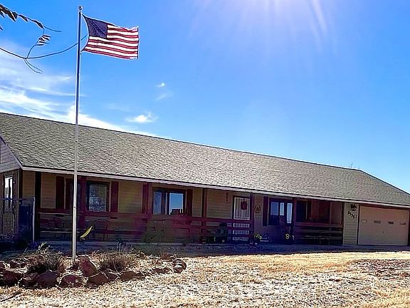 HORSE LOVER’S PARADISE! No HOA; Fully fenced 9.97 acre lot with panoramic views; Complete set for horses! 7 stall barn with turnouts, tack room, de-rocked riding arena, round pen, hot walker, cross ties, 8 paddocks with 3 sided shade structures, 4 large pastures with shades, horse wash rack; Lots of oil pipe fencing; close to state land; Nice private location perfect for horses with fully fenced perimeter; Large Metal Building/Workshop (24'x73') with awning to store vehicles, hay, etc.; Large open floor plan and a guest house! Custom 3 bedroom/2 bath main home with vaulted ceilings and newer roof! Front porch; Open concept living room, dining room, kitchen, and family room. Snack bar in kitchen; Large pantry; Indoor laundry room; Tile floors; Huge primary bedroom suite with walk in closet; Dual sinks in the primary bathroom; Arizona patio room off the primary bedroom; Relaxing patio with Spa; Guest house could serve as a mother-in-law quarters: 1 bedroom; 1 bathroom; walk in closet and deck; Granite counters in the guest house; 2 car attached garage with shelves and a work bench; Farm animals okay; Chicken Coop; Septic; Private well and well house/shed; Will cooperate with buyer’s agent; Beautiful horse property – become a ranch owner today!