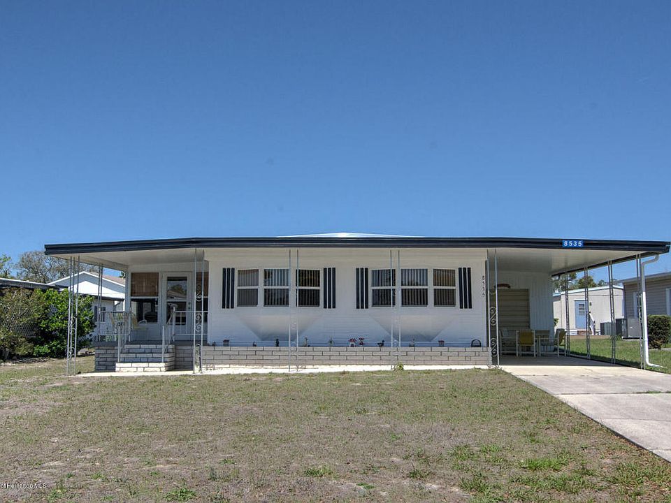 Meticulously maintained & FULLY FURNISHED 2/2 home. Features newer windows, glass-enclosed Florida room and a front porch to enjoy year-round! Updated baths feature walk-in showers. Large utility room with golf cart door. Located in popular 55+ community where you own your own land. Community amenities include tennis, heated pool, horseshoes, bocce, community center, pickle ball and more. Located near major medical facilities, shopping and restaurants.