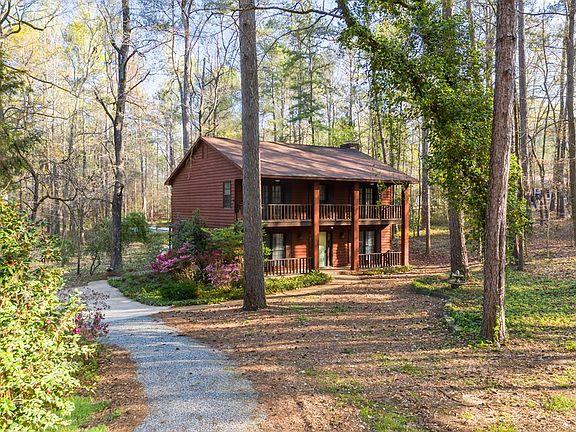 This beautiful cedar home with a sparkling pool sits on 2.35 wooded acres in Muscogee Co.; it has 3 spacious bedrooms upstairs, including the large main bedroom with ensuite, 2-1/2 updated bathrooms (half bath on main floor), an updated eat-in kitchen with granite counters, a separate dining room, gas fireplace in the large living room which leads to a climate controlled sunporch offering a picturesque view of the property overlooking the private backyard, firepit, hot tub and sparkling pool. This property also offers 2 large wired outbuildings, one being a climate controlled "she-shed" with its own little front porch. This one-of-a-kind wooded retreat boasts ultimate privacy with its gated driveway, nestled among the natural beauty of pines, hardwoods, flowering plants and more. You will enjoy the tranquility of nature, the convenience of schools, restaurants and more in this tranquil, rustic retreat.