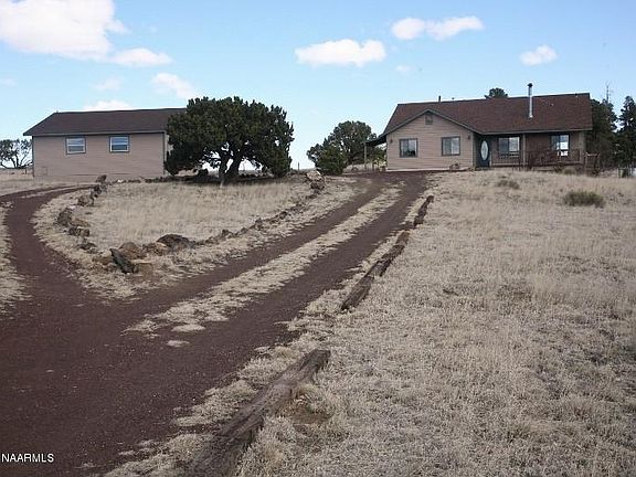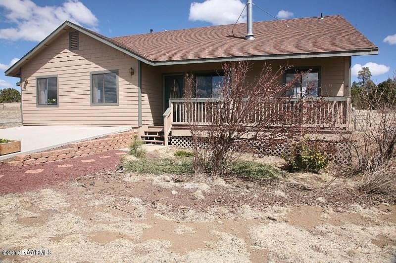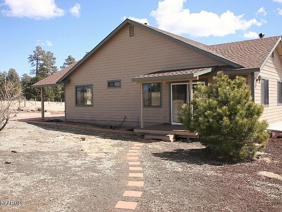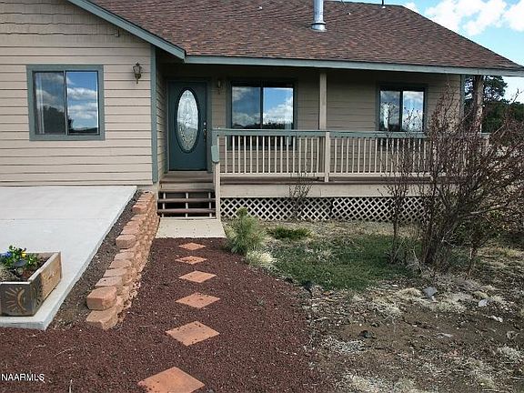 Property adjoins National Forest land on one entire side. Perimeter fenced. Beautiful panoramic views of rural area to south and San Francisco Peaks to west. Perfect location for a horse property. Large paver patio with fire pit, front porch and covered deck. Custom artistic tile work in baths. On dead-end road.