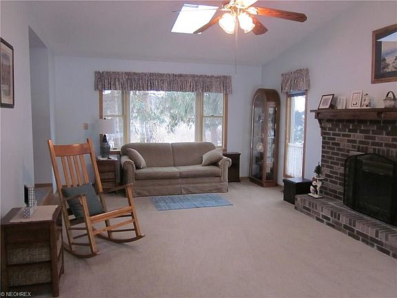 Cozy front porch welcomes you home to this warm and inviting home. Huge addition was added as either master suite with double closets and full bath, or can use as a family room. gorgeous private lot, partially fenced in yard, 2 rear decks, oversized 2 car detached garage with covered patio, also 2 storage sheds, very private setting across street from West Branch State Park. On a dead-end street.