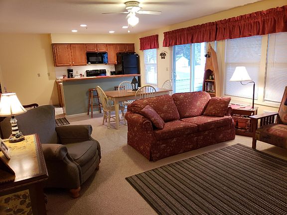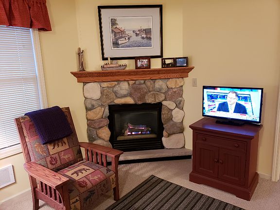 Newly renovated two bedroom, two bath, 2nd floor, four season condominium at the Portage Point Inn and Marina (a family resort). Full kitchen, gas fireplace. Building sits on Portage Lake. Lake Michigan beaches are short walk to the west. Private deck on the east side of unit and a large common deck out access door across hall with views looking east across Portage Lake. Outdoor, infinity edge pool, hot tub, and lounging deck just below on the lakeside of building. On first floor is free use of laundry facilities. Easy access to beachfront, fire pits, playground, shuffleboard, bar, and cafe. Most furnishings are included making this condo. ready to use. A great income property managed by Portage Point Property mgmt. with onsite staff. Slips by your condo. to keep your boat. Portage Lake connects to Lake Michigan for easy use of either lake by boat and easy use of either beach by walking. Resort Amenities: Outdoor pool, outdoor hot tub, playground, shuffleboard, sandy beaches with beach furniture on Portage Lake & Lake Michigan, fire pits, lawn games, marina, cafe, deli, & pizza parlor, full service bar, banquet room, frequent entertainment, property management and housekeeping team, free community washer & dryers, grounds and building maintenance taken care of. CONDO AMENITIES * Only Pavilion 2 bedroom that has 2 bathrooms. * Largest 2 bedroom condo except the Townhouse condos. * Fully updated condo. 3 years ago including kitchen appliances, floors, & bathrooms. * One of the largest kitchen & living room areas. * Master bdrm. deck can be enclosed to add 90 sq. ft. *Lakeside deck accessed directly across the hallway. * Good amount of privacy as a 2nd floor duneside unit. * Pool and hot tub accessed from the Pavilion building. * Community bathrooms & showers on first floor. * Free washers & dryers on the 1st floor of the Pavilion. * Furnishings included makes it useable immediately. * A great rental income property. * Duneside deck off the living, dining room, & kitchen.