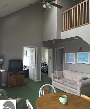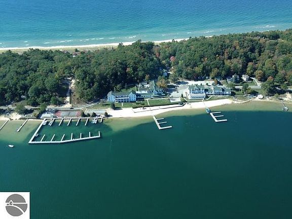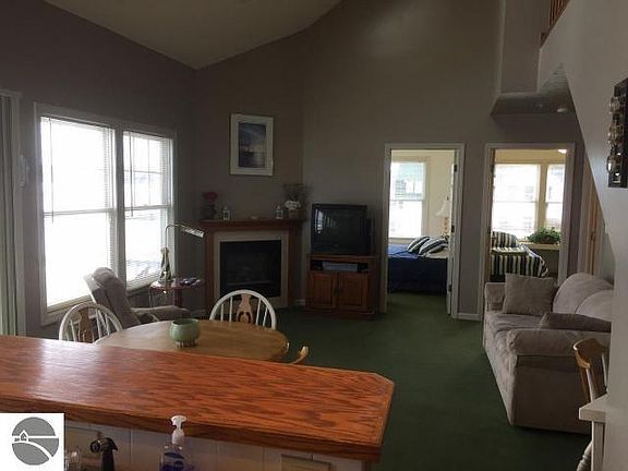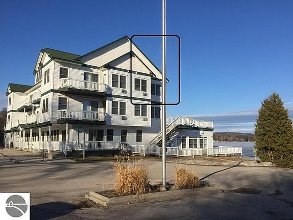 Overlook PORTAGE LAKE from this 2-story condo on the third floor at the historic Portage Point Inn. Beautiful views from all angles. And LAKE MICHIGAN is just steps away. Three bedrooms and two full bathrooms make this a wonderful space for your family and friends to enjoy comfortably. You'll enjoy the open feel from the high ceilings and walls of windows. Turn-key. Gas fireplace. Sleeps six very comfortably in beds. Currently in a vacation rental program offering extra income when you're not available to utilize it. New owner at the Portage Point Inn with exciting plans for the future. Marina offers boat slips to rent and charter trips are also available. Pool, hot tub, fitness center and restaurant are all being renovated. Great time to invest in the future and enjoy now! Contact Suzanne Riley at 231-620-9561 or Suzanne@c21boardwalk.com. Check out rental info at www.iloveOnekama.com