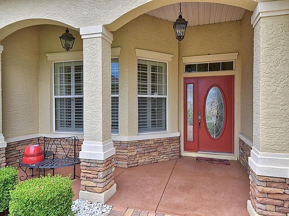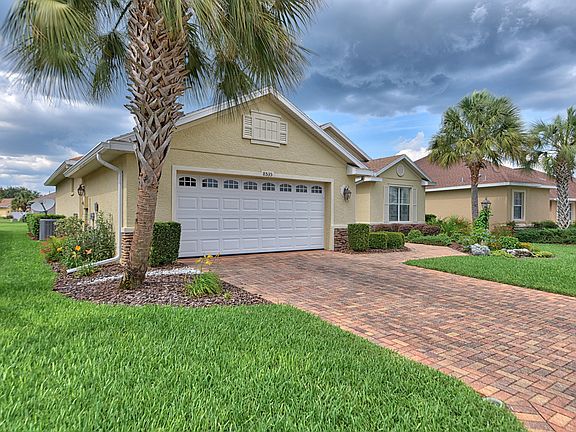 This is a beautiful 3 bedroom, 2 bathroom, 2 car garage Ayreshire model home with an spacious back yard in Candler Hills. You will be impressed with the stunning landscape and lush green lawn. The home features a decorative stone finish in front, plantation shutters, laminate flooring, Corian countertop and sink. The gas range, microwave, washer and dryer were replaced in September 2017. Located in Ocala's premier, gated, 55+ community, loaded with amenities, including golf cart access to two shopping centers.