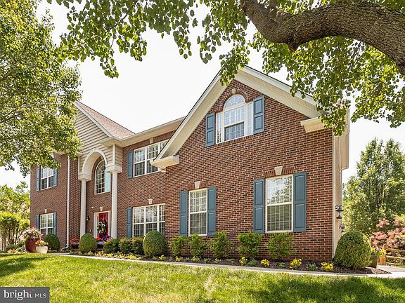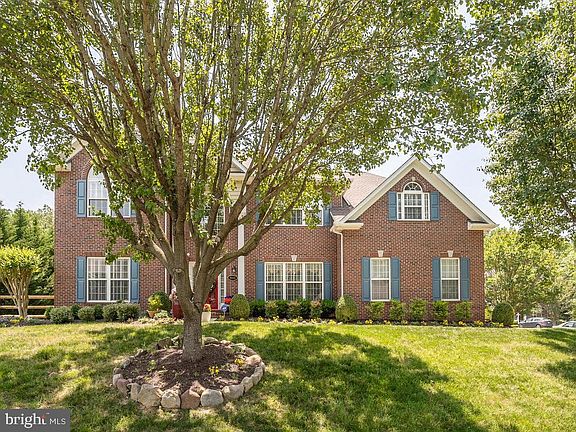 Gorgeous brick front Colonial with dramatic, very unique, light filled floorplan! Huge house with so many upgrades on a 1/3 acre corner lot! Nicely landscaped. Soaring two story foyer with hardwood floors. Living room with crown moulding and chair railing. Dining room with beautiful trim and ceiling fan. Family room with floor to ceiling stone raised hearth fireplace. Stately columns. One bedroom with built in shelves and attached full bath (could be office). Gourmet kitchen with island, new appliances, gas cooktop, double wall oven and pantry. Sun room/morning room with ceiling fan. Powder room with new flooring and sink also on main level. Upper level features four bedrooms, two bathrooms and a den/office area. Luxury owner suite with tray ceiling, ceiling fan, sitting room, walk in closet featuring space saver closet organizer system and attached spa bath with dual vanity and jetted, heart shaped tub. Basement features washer/dryer, storage and slider exit. Two car, side load garage. Intercom system. Iron balusters. Many new light fixtures. Brick paver patio. Shed. Wood split rail fencing. New roof and HVAC. Must see!