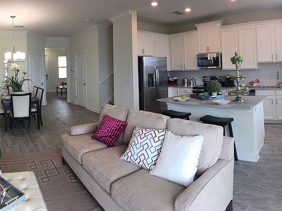 Brand new Tea Olive model townhome in the upscale Vistas development in Champions Gate. This spacious open townhome has a beautiful golf course view, upscale kitchen, tile throughout the main living area, and all bedrooms situated upstairs. All residents have access to the Vistas Club, with high-end amenities such as game room, golf simulator, fitness room, dry saunas, and resort style pool and spa. Also access to the Oasis Clubhouse at Lennar in Champions Gate. A package including cable, internet and exterior pest control is also provided. Downtown Champions Gate has restaurants, shopping an easy access to I-4. This golf style living is near two nationally recognized Greg Norman designed courses. Truly luxury resort town home living at it's best.