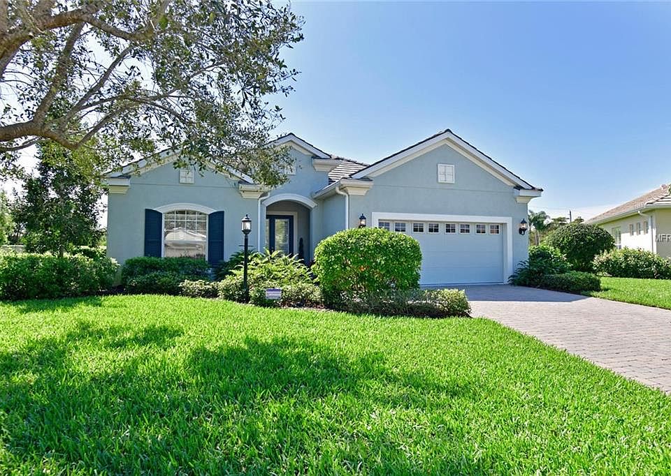 Maintenance Free living at it's finest! This home shows like a model and is mega-upgraded with exceptional quality features! From the moment you step through the clear glass panel front door, it is obvious this greatroom floorplan lives large, with a split bedroom design, den, and both formal and casual dining. Spectacular features include: Engineered hardwood flooring, extensive crown moldings, 8 ft. French doors to the lanai, plantation shutters; and granite countertops, stainless steel appliances, with double oven range and slide out shelves in the kitchen! The master suite is spacious and luxurious with every woman's dream custom built-in closet! Energy efficient upgrades include: a radiant heat barrier in the attic, foam insulation in the exterior concrete walls, high efficiency A/C with humidity control and insulated windows. Don't overlook the expanded garage and screened lanai! Great extra space in both of those locations, as well as the small office niche off the kitchen! Oh so many upgrades and located on an oversized lot with views of the lake! Just down the street is the Wisteria Park community HEATED pool and spa at the Gathering Area. Enjoy the walking/biking accessibility to DeSoto National Park, the Robinson Preserve, and the Palma Sola Botanical Park!