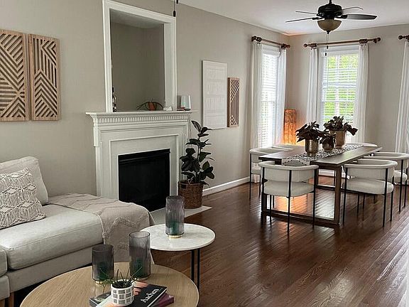 Gas-log fireplaceRocking-chair front porchHardwood floorsUpdated lightingCozy family roomAmple cabinet spaceFenced backyard