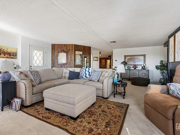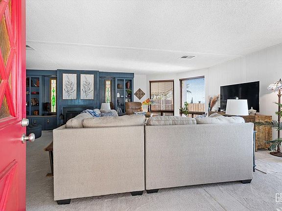 Welcome Home! This 2bed, 2 bath spacious home offers a whopping 2108 sqft of comfortable living. Upon entering, you'll be captivated by the natural lighting that shines through showcasing the spacious living area and beautifully built in hutch/fireplace. The kitchen offers plenty of counter space to get those homemade meals ready. It also has a refreshed appearance with a brand-new ceiling, freshly painted cabinetry and fixtures providing an enhanced appearance. The grand dining room will provide plenty of room for those large family gatherings. The spacious bedrooms provide ample space for that King size bed and bedroom furniture! Both restrooms provide new plumbing throughout along with new sink fixtures and toilets. Outside, the yard boasts faux grass that requires minimal maintenance, complemented by new fencing that enhances both privacy and outdoor charm. You'll also enjoy access to a swimming pool, spa, club house, gym, and RV parking. Schedule your showing today!
