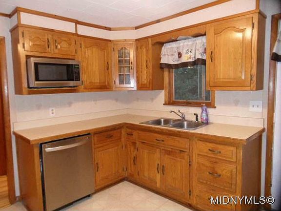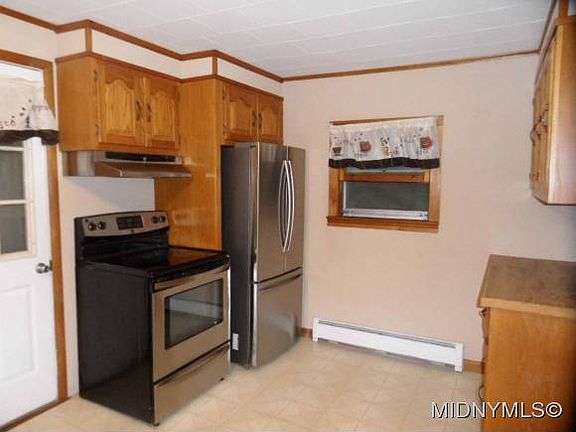 An adorable 2-3 bedroom home w/ large dining room, (Table and Chairs included) + living rm. New stainless steel appliances. Updated and heated 3 season room. 1 stall heated garage. Move in condition, freshly painted, public water, low taxes, Oriskany schools, and shed