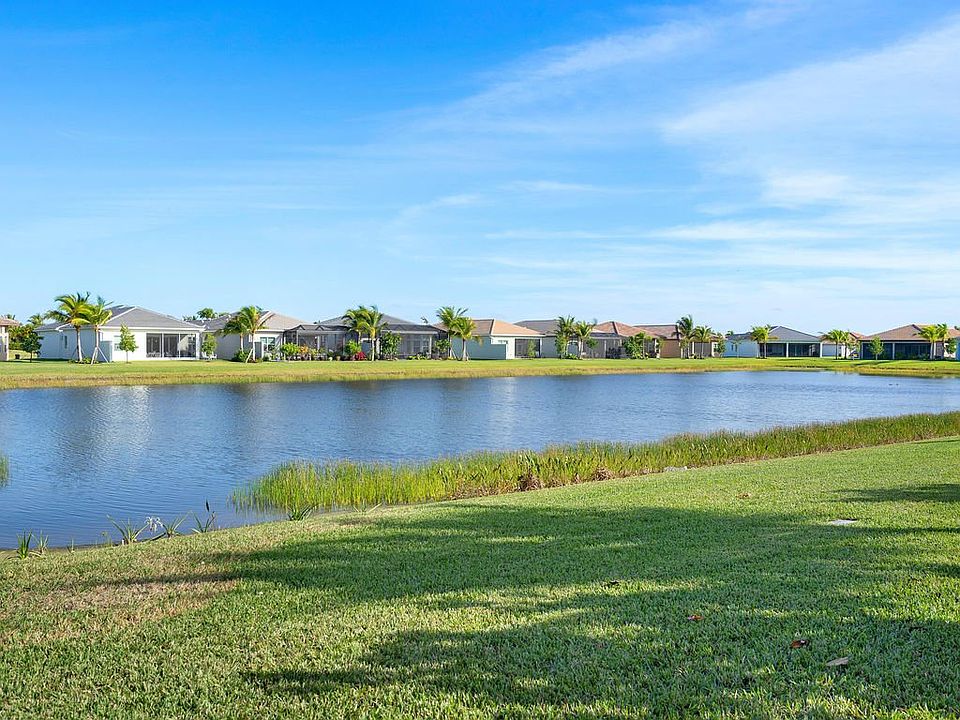 Located in the center of Valencia Bay, this never lived in Atlantica model features 2 bedrooms plus a den, an open floor plan and beautiful lake view. Approximately $75,000 in upgrades and lake lot premium, Upgrades include extensive kitchen and bath upgrades, upgraded variable speed Performance model carrier A/C, 35+ recessed lights and much more. Please call for full list of upgrades. Interested in this home with 24x24 rectified porcelain tile floors in a neutral color. See three pictures with insets (renderings) and call for details.