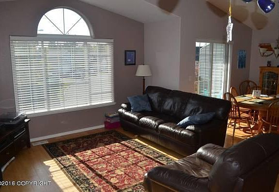 Sun drenched townhome in sought after south Anchorage neighborhood. Open floor plan, gas fireplace, heated garage, deck and fenced yard. Upgrades include new interior paint, new SS kitchen appliances, new floors throughout (bamboo in living area, luxury vinyl downstairs, carpet in upstairs bedrooms), new window blinds in living area and Master Bedroom. Minutes from parks and shopping