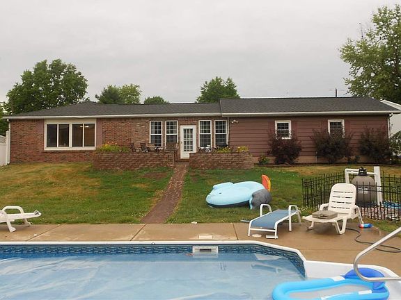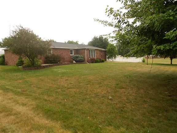 4 BR, 3 BA total electric brick ranch in a rural subdivision north on a corner lot on .88 acres. Your family is going to love the 16 x 32 in-ground pool with a privacy fenced back yard. There is plenty of room for the kids to play in the pool or on the playground equipment. Pool liner is only 1 yr old & pool pump is 2 years old. There is plenty of storage inside and out, with a 2.5 car garage & pole barn. Inside, you will enjoy all the amenities: 2 master bedrooms, hardwood floors, ceramic tile, vaulted ceilings, and updated kitchen with a fantastic island. Home also features an eat-in kitchen and formal dining. Seller has added electric to the pole barn and has ordered a door to match the current doors on the garage.