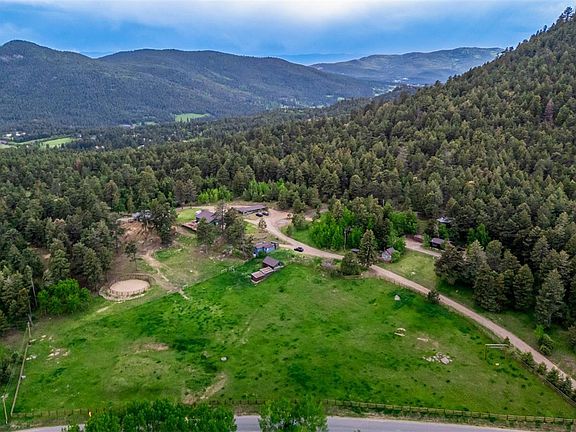 Huge Price Drop!!! A rare and extraordinary opportunity to own a breathtaking mountain equestrian retreat in Morrison, Colorado. Spanning approximately 28 pristine acres, this exceptional property offers a perfect blend of rustic charm, modern amenities, and endless possibilities for both personal enjoyment and investment potential. Notably, Doubleheader Mountain Peak is located exclusively on this property, offering unparalleled privacy and a truly one-of-a-kind setting.At the heart of the ranch is the main residence, a cozy yet spacious two-bedroom, one-bathroom home featuring an open-concept living area with tall ceilings, large windows that frame panoramic mountain and city views, and a tiered deck ideal for outdoor entertaining or peaceful mornings in nature. Adding to its unique appeal, six rustic cabins are thoughtfully positioned throughout the property, each boasting its own distinct layout. These charming one-bedroom, one-bathroom cabins feature warm, inviting living spaces with wood-burning fireplaces, private storage sheds, and scenic views, making them ideal for guest accommodations, rental properties, or a retreat-style getaway. For equestrian enthusiasts, Doubleheader Ranch offers top-tier facilities, including a state-of-the-art horse stable built in 2021. Designed with functionality and safety in mind, the stable includes 5 V-front stalls, ample interior storage with tack room, and covered exterior storage areas. Just outside, three expansive, fenced pastures including a round pen provide plenty of space for horses to roam freely, all while enjoying the fresh mountain air and natural beauty of the surrounding landscape. The ranch also features a community yurt, a tranquil gathering space perfect for events, retreats, or simply unwinding in a serene setting. Private hiking and riding trails wind throughout the property, offering endless opportunities to explore the stunning natural surroundings. https://vimeo.com/1049644900?share=copy