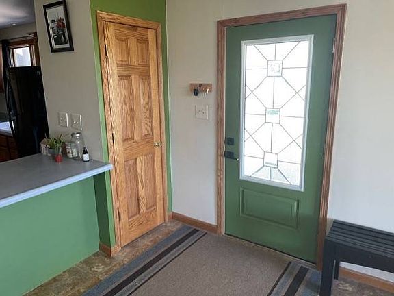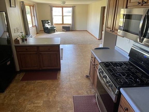 Steel roof on house, several outbuidlings. Covered front porch with engineered decking. Living Room and Dining Room: Insulated front door has decorative glass. Open concept, Pella windows, neutral wall covering. Taupe carpet. Dining area has nice vinyl flooring, snack bar near kitchen. Kitchen: Oak cabinets with crown molding. Black/stainless appliances included. Continuous vinyl tile as dining room. 6 panel oak doors to lower level. Bedroom: Neutral carpet, nice closet, 6 panel oak doors. Bath: Steel blue walls, white fixtures, laminate floor, spacious. Bedroom: Large room with neutral carpet, dark blue walls, 6 panel oak door. Closet doors are removed for convenience of the owners. BASEMENT LEVEL: This finished dry basement adds much needed space for your family use: Office/family room: Painted drywall, cream low nap carpet, open area at foot of stairs. 2 bedrooms both have painted walls, large closet, low nap carpet. Bath: White fixtures, step in shower, ceramic floor with heated tiles. Garage: 2 1/2 car garage has lots of storage for ATVs and mowers plus 2 large cars. Barn near the back of the acreage, plus a zip line for kids to ride across the creek and valley! This house has a shared well with complete legal documentation for use and repair. Ask realtor for more information.