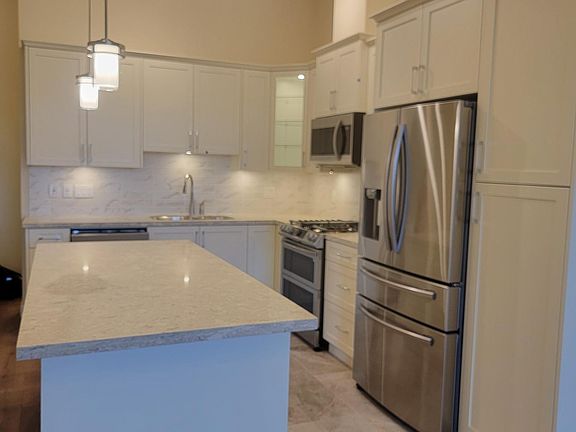 BRAND NEW - TOP FLOOR PENTHOUSE - CORNER UNIT Very QUIET 3Bedrooms 2 full bathrooms NICE VIEW: Northshore mountain, city, Golden Ear bridge. . Central business district. Yorkson Park West - Quadra Home building B. Gorgeous/large 1381 sqt incl solarium w retractable glass for entertaining, gardening Energy efficient heat pump (aircon + heat). Wide plank laminate floor, Gourmet/high end Samsung SS appliances: 5 burner gas range, double ovens, quartz countertops, Air conditioning, energy efficiency Efficient heated pump technology, heated bathroom floors, double sinks in main bedroom 9 foot ceilings 2 car parking, enough power to charge for electric car w Level 1 charger 2 locker storages, Attractive fireplace Some pets allowed (with additional non-refundable fee), Fitness center, massive play/lounge room. Childcare nearby Nicely quipped fitness room and meeting room Walk to many restaurants, shopping, bus stops, preferred school, indoor tennis, creation center, Skytrain express bus 555 No smoking. Outdoor hookup for gas BBQ Security, strata fee 278.19/month. Tenants to pay all utilities. Renter pays for utilities. Gym room included in strata fee (paid by owner)