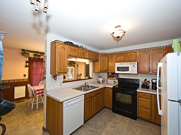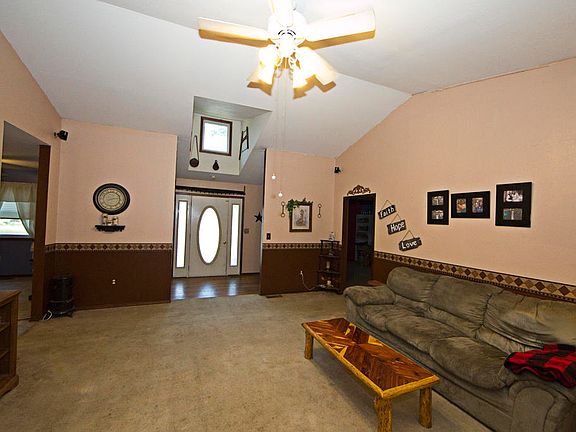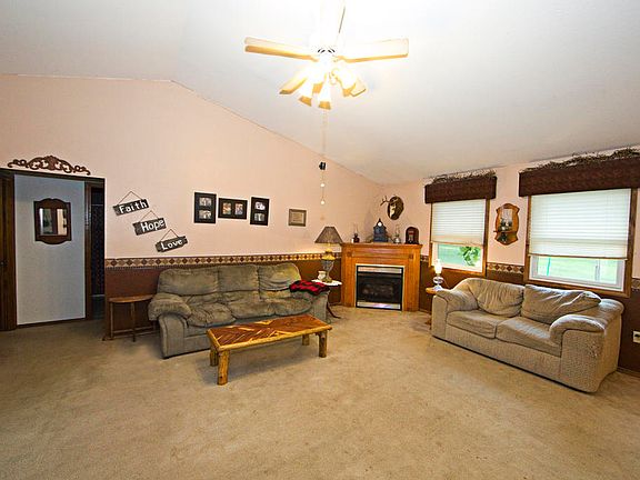 Great location close to town with this maintenance free home. This home sits on a corner lot with mature trees, large back deck and covered porch. Open floor plan with cathedral ceiling in living room.