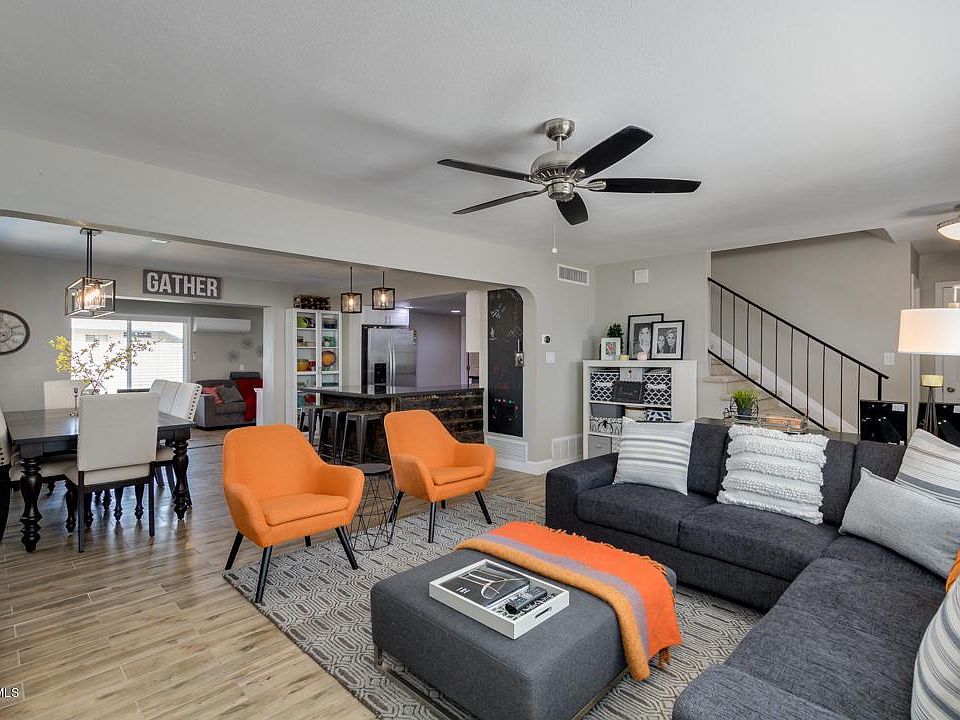 This meticulously kept 4 bedroom/3.5 bath home is situated in the desirable Park Scottsdale neighborhood, close to Old Town. Highly remodeled interior offers two Master Bedrooms, one downstairs, two nice size living areas, lots of natural light, new light fixtures throughout, beautiful wood-like tile, and wood-burning fireplace. Enjoy cooking in this spotless kitchen offering breakfast bar with reclaimed wood, white cabinetry, quartz counter-tops, recessed lighting, and sparkling stainless steel appliances. Double pane windows, new AC compressor and fan motor on 2014 unit, gates on both sides of the home. Take note of the peak-a-boo view of Camelback Mountain out of a spacious upstairs bedroom window. Perfectly sized grassy backyard with covered patio and pavers is ideal for gatherings.