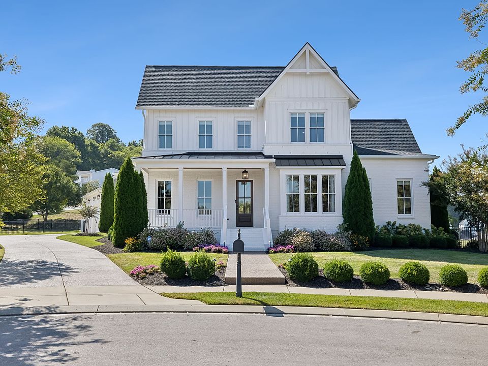 Nestled on a nearly half-acre lot in a serene cul-de-sac on a hill top, this stunning Ford Classic Home in the gated community The Grove offers privacy & luxury. This brick home, featuring 5 beds, 5 full baths & 1 half bath, spans just over 4,000 sq ft. Recent updates include a new roof & gutters. Enjoy top-tier finishes like hardwood flrs on the main level, and quartz countertops in the kitchen, which boasts a Thermador 36" gas cooktop, Bosch double oven & dishwasher & a KitchenAid refrigerator. The main level features a primary suite, formal dining, office/5th bedroom, and a half bath with elegant wallpaper. A bonus room and second-level Trex deck enhance the upper floor, while outdoor amenities include a covered rear porch with a fireplace, covered front porch and a fenced backyard with brick columns. Other highlights include an attached 3-car garage, spacious driveway, irrigation system & tasteful crown molding throughout. Enhanced by the resort style amenities The Grove offers.