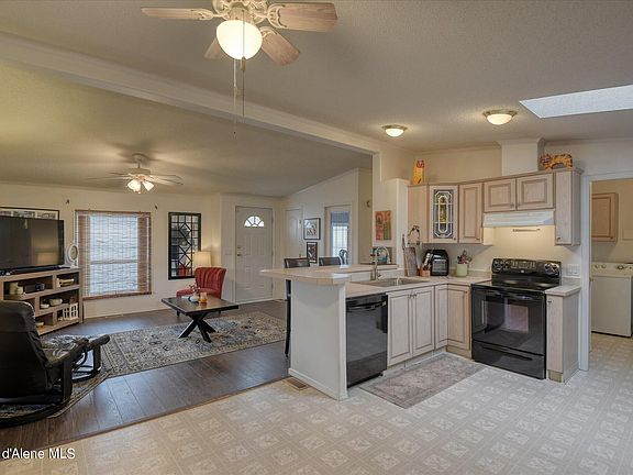 Incredible value in Jasper Falls 55+ community! This ASSUMABLE lease has 28 years left for one of the lowest lot rents you can get! This spacious home has two bedrooms plus a bonus office/den, an oversized master suite with double sinks and a neatly landscaped, fenced backyard with two storage sheds. Take in the beautiful Rathdrum Mountain view from your covered front porch and enjoy tons of amenities including a golf putting course, pool, hot tub, sauna, fitness room, library, movie theater, billiards, computers, picnic/BBQ area, horseshoes and pet parks. This unique ultra-low HOA fee includes water, sewer, garbage, land lease & community plowing. With a little TLC to repair some pet damage, you will have yourself the best deal in town!