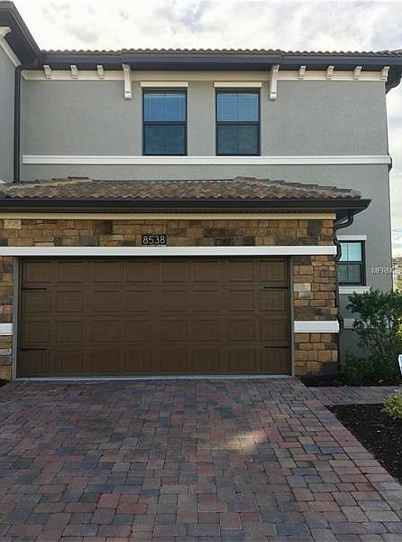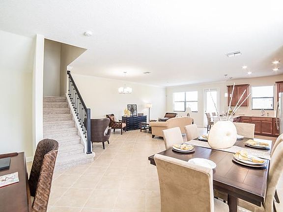 Don't miss the chance to be the first family to live in this gorgeous new construction townhome in Champions Gate! You have plenty of space with 3 bedrooms and 2 and 1/2 bathrooms. It's packed with upgrades including, paver drives, Taexx Pest Control Pre-Installed, solid steel, raised-panel carriage style garage doors, 2" designer blinds, GE® washer and dryer included and Touch screen deadbolt at entry. That's not all! The designer kitchen has GE Stainless Steel appliances, luxury 42" multi-leveled, maple wood cabinets with crown molding, chrome cabinet hardware quartz countertops, stainless steel under-mount kitchen sink, full decorative backsplash, and designer faucet. Your flooring includes tile in all wet and common areas and Mohawk® green certified, plush, wall-to-wall, upgraded carpeting in all bedrooms. The master suite comes complete with maple wood cabinets, designer chrome plumbing fixtures, quartz countertops, garden tub, separate shower and dual sinks. The community also features a swimming pool, club house, fitness center, fully maintained lawns, gated entrance, and golf course. All conveniently located close to shopping, restaurants and the attractions! Schedule your showing today!