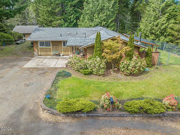 Welcome to your slice of country paradise in Florence, Oregon! Nestled on 1.21 acres, this charming 4-bedroom, 3-bathroom home offers the perfect blend of serene country living and convenient access to town amenities. This home is move-in-ready and comes complete with ample amount of parking, including plenty of space for your boat or RV, an established chicken coop, a warm pellet stove, hot tub and beautiful landscape. The primary suite features a spacious walk-in closet and a jet bath tub for soaking. Don't miss your chance at this rare to find, spacious coastal living!