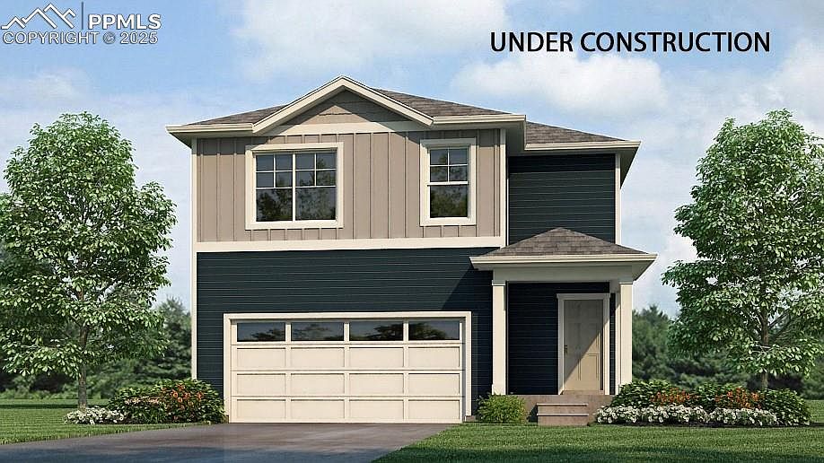 This impressive 2-story home is offering an exterior featuring a blend of classic and modern architectural elements, with a welcoming front porch leading to an impressive 8-foot door at the entry. The centerpiece of the home is the oversized great room area, perfect for everyday living or entertaining guests. full backsplash, and a sink facing a window overlooking the spacious backyard. On one side of your upstairs floor, you will find 3 roomy secondary bedrooms with ample closet space and a secondary bathroom with double vanities, with plenty of counterspace, shower/tub combo. On the other side of your upstairs floor, you will experience the luxurious primary suite that includes a bathroom featuring a large relaxing shower, double vanities with quartz countertops. Just a few of the conveniences you will enjoy including air conditioning, tankless water heater, smart home technology, front yard landscape with sprinkler system, fencing, limited warranty, and more. Located in Fountain/Fort Carson School District 8. This home is perfect for those looking for space, style, and a prime location!