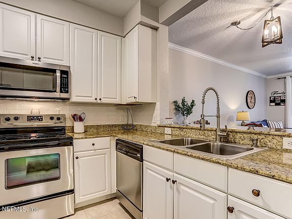 You will love this adorable top floor condo with spectacular views of the pool from your private balcony! Open floor plan with living and dining areas, and kitchen equipped with stainless steel appliances, new sink, faucet, backsplash, and granite countertops. Spacious primary bedroom and bathroom with walk-in closet. HVAC and water heater are 3 years old. Gated Villa Medici is an amenity-rich community with resort-style pool, grills, fitness center, clubhouse, game room, dog park, walking path, elevators, and much more. Live in the heart of Southside with easy access to JTB, I-95, and St. Johns Town Center. Call for your appointment today!