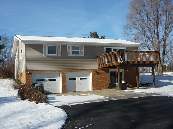 Recently updated home features a spacious kitchen with plenty of cabinet space, 2 bedrooms with 3rd main floor room that could be used for a bedroom or office (no closet). Newer flooring, paint and tub on the main floor. Large sliders lead to deck area overlooking acreage. Started but not completed are expansion opportunities in lower level offering a future family room area, 10.8 x 8.3 bonus room and half bath. Current laundry facilities are in the air conditioned/heated garage; however, were previously installed in the lower level bonus room where hookups are still available. 40x20 outbuilding with drive through overhead doors. Creek running through back of property. Roof 2020. Current property tax rate 8.2163.