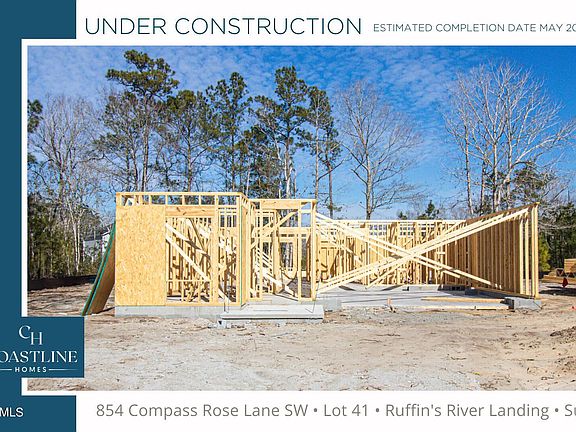 This handsome fella is under construction in the framing phase at 854 Compass Rose. Beautifully situated on the corner of Eden and Compass Rose this lot is 100 feet by 150 feet. The Fletcher is one of the many homes this builder has to offer. With over 27 years of experience building in Brunswick County it's all about the semi custom finishes. Quality finishes begin on the outside with the raised slab foundation with durable vinyl shake and board and batten siding accents, front load two car garage, 10 feet by 14 feet covered back porch, and mature landscaping with fresh sod and irrigation. Come on inside where Autumn Embers, Mohawk Luxury Vinyl Plank flooring walks you through the foyer past the office space and into the kitchen where this gorgeous, easy breezy, Himalayan Moon Granite Countertops smooth over the white and grey painted cabinets. The designer package lighting is the cherry on top in this home. The Sherwin Williams painted walls and all the large PlyGem windows make this home feel open and airy. Total heated living space is 2473 with 4 bedrooms, 3.5 bathrooms, office space, and a bonus room. The living room's gas log fireplace creates a great ambience for relaxing and entertaining guests outside.The Owner's Retreat is tucked away on the other side of the home from the main living spaces and guest bedrooms for maximum privacy. The owner bath features painted cabinetry with cultured marble counters and double vanity with Moen fixtures. The luxurious walk-in tile shower, and water closet with comfort height, elongated toilet complete the elegant master retreat. Oh, and the massive walk-in closet measuring 9 feet by roughly 7.5 feet entering the owners retreat provides plenty of space for both him and her.Spacious bedrooms two, three, and four are located on the second floor with an open bonus room or loft. No worries of fighting over the bathroom. The upstairs has two! Featured with painted cabinetry with cultured marble counters and fiberglass shower tub combos. All three bedrooms feature large walk-in closets. Mohawk carpet flooring and finished off with a beautiful coat of Tradewind paint by Sherwin Williams. Back downstairs the laundry room, mudroom, and powder room are located off the 2 car garage entry. Keeping everything out of sight while having guests over! Whether you're a beach lover, boater, golfer or a combination of these, Ruffin's River Landing is a prime location to enjoy all these lifestyles. Just less than 8 miles away from Holden Beach, golf courses, public boat launches, medical centers, and shopping in Shallotte. Low homeowners' association dues of $576. Come put this home under contract while it is under construction before it is gone and let's make the first move to start Living and Loving Brunswick County! Contact us for your exclusive tour of The Fletcher and other amazing finished floor plans that this builder has to offer in Ruffin's River Landing, River Sea Plantation, Winding River and St James Plantation!! We can't wait to meet you!