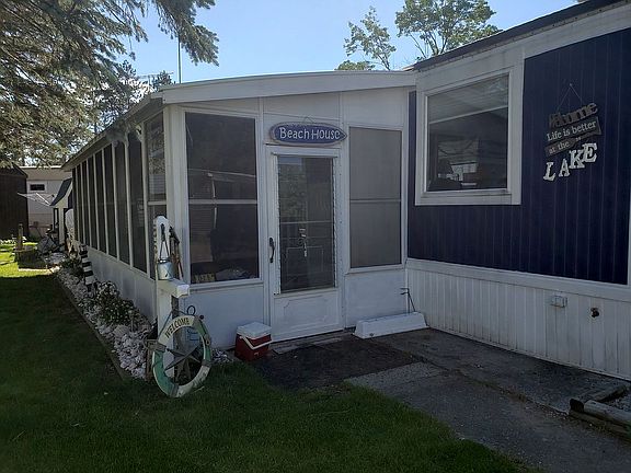 Completely furnished and recently remodeled, older but well maintained mobile on Wixom Lake with attached sun room and two detached sheds. 2 br, 1bath, attached screen room in Pleasant Beach Resort. Monthly lot rent $325 in this park which offers boat dock and ramp, private beach, club house with new beautiful showers and laundry, campground, playground and swimming pool. This home sits on the largest (formerly lake front) lot in the resort. Pontoon Alley, tubing, fishing, floating, swimming right out your door when lake returns! Lake is currently empty for dam repair which is expected to take a few years. Price dropped drastically for this reason! Buy now while the price is low! For cheaper than the cost of most new campers you can look forward to amazing lakefront views with all the benefits of a campground community all year long! Home has central air and all furnishings are included: 2 beds, dressers, linens, TV, new living room set, chairs, grill, water blow-up toys/tubes/kayaks, appliances, and cupboards full of kitchen cooking supplies ready and waiting for you to walk in, relax and enjoy!