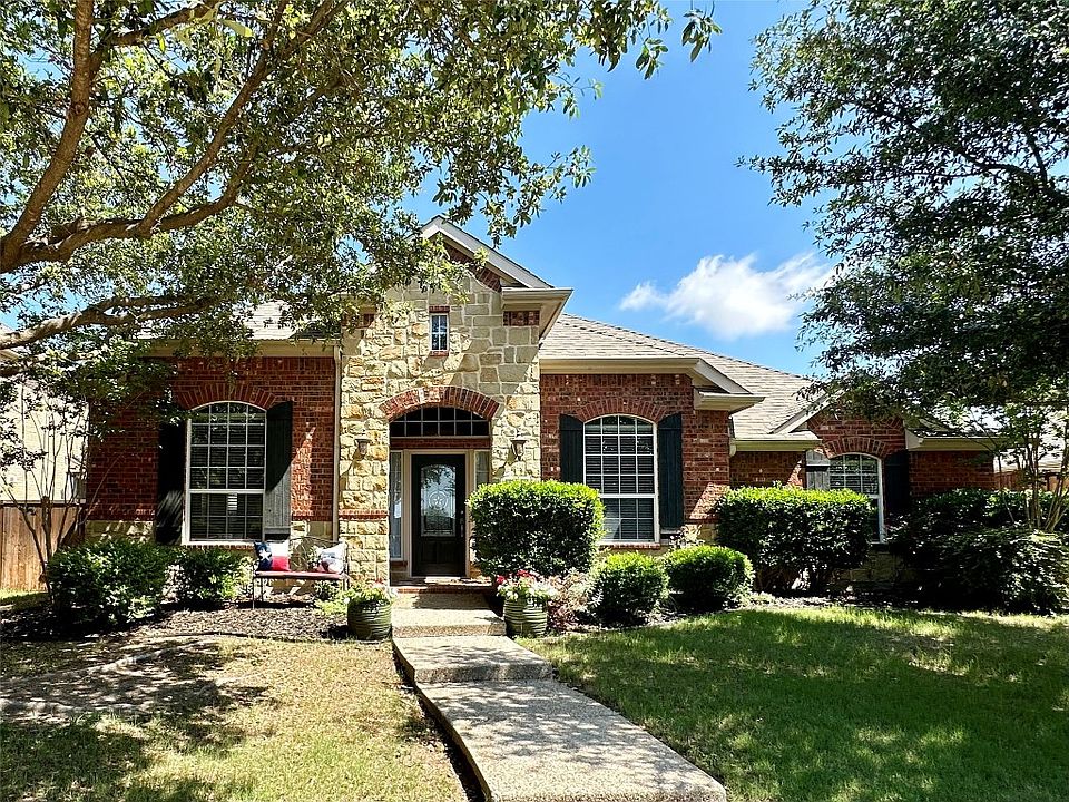 Charming three bedroom, two bathroom plus a study home located in The Trails of West Frisco. This home offers an open floor-plan with lots of amenities. Chef's kitchen features gas stove, stainless steel appliances, and granite countertops. Oversized primary bedroom with vaulted ceilings and ensuite bath with walk-in shower, garden tub, dual vanity and walk-in closet. Built-in desk office space. Covered patio and spacious yard with plenty of space for kids and pets. The Trails offers tons of amenities including communities pools, parks, playgrounds and tennis courts. Exemplary rated Frisco schools.