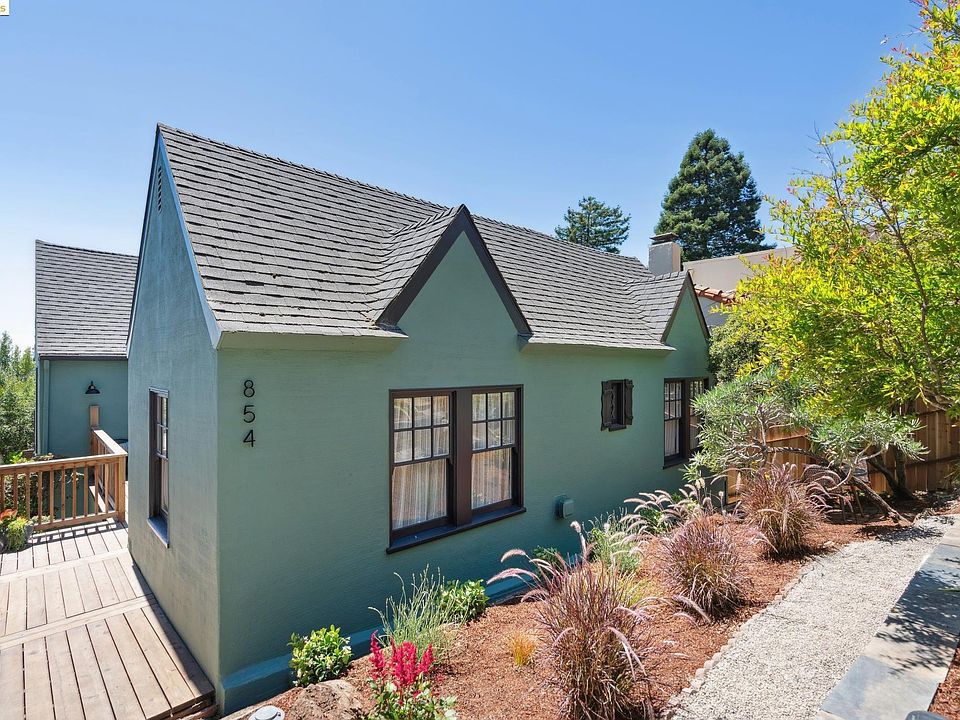 Views forever! Walk in and be wowed. Three plus bedrooms, very flexible! This luminous, airy home in the desirable Berkeley Hills offers Bay vistas by day and the glittering City by night. The spacious living room features soaring ceilings, a stately fireplace and a deck perfect for entertaining or relaxing. The sunny kitchen opens to an eating area and back to the deck, for more views. Dine in the formal dining room with large south-facing french doors, or retreat to two quiet bedrooms nestled at the front of the garden and a bath. Downstairs, find an additional bedroom, living room, kitchenette, and brand-new bathroom, ideal for extended family or as a separate unit. Minutes from Tilden Park and a short walk to Cragmont School, this vibrant neighborhood feels vibrant and friendly. A quick drive down Marin brings you to the top of Solano Avenue and all the amenities of North Berkeley. Experience flexible living in this Berkeley gem!