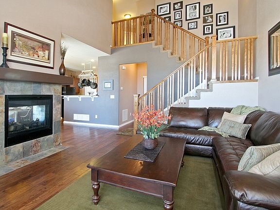 This quaint townhome sits on a hill that shows off beautiful panoramic mountain and city views. With 3 bedrooms, 4 baths & a finished basement you'll have all the space you've been looking for. Wood flooring and double sided fireplace accentuate the living & dining room. The kitchen has been upgraded with solid surface countertops, stainless steel appliances, custom backsplash & plenty of cabinetry and counter space. Enjoy your summers on the walkout patio right off the dining room. All bedrooms are located upstairs for convenience. The master bedroom includes a 5 piece master bath suite featuring large oval tub, glass shower, gorgeous countertops & tile work. The finished basement has a great space that can be used for a rec room, a separate room for an office or den and a half bath.