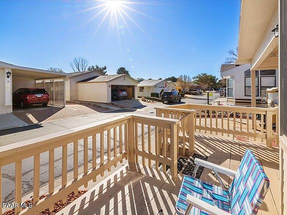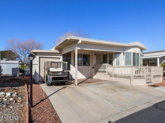 Wonderful park model home in a 55+ community. It is a 2 bedroom, 2 bathroom home with a golf cart garage & a wonderful front deck to enjoy view of the area. There is also a fenced backyard.