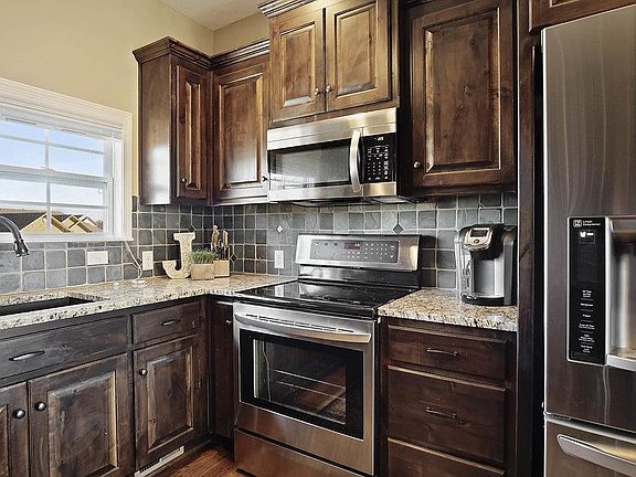 2 YEAR NEW HOME IN GENESIS CREEK!! This 3 bedroom 3 bathroom home sits on a quiet cul-de-sac. Marvelous hardwood floors throughout main living area. Kitchen with granite, backsplash, stainless appliances and beautiful dark cabinets. Eating area has sliding glass doors which walk out to covered deck! Family room includes a stunning stone gas fireplace. Lower level room has a full bath and closet and can be used as a 4th bedroom or 2nd family room. High efficiency Furnace. Don't miss this one!