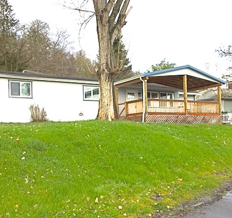 Walk to the Mall and Fred Meyer from this home on the hill. Home has been remodeled with new flooring, paint, counter tops & cabinets, kitchen sink, vinyl windows, all new doors and locks, hot water heater and new tiled bathroom. Enjoy views from the large trek front deck. The one car garage is attached, corner lot with access for RV parking.