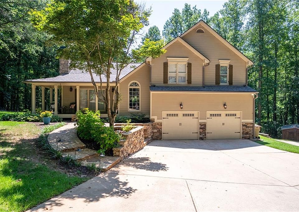 This beautiful property begins with a long driveway leading to 2.2 acres of tranquility and privacy. Next, the impressive and inviting Front porch, wonderful landscaping and stone accents. Main level features entrance foyer, Hardwood flooring, Stacked stone fireplace and is open offering easy flow between living spaces. Large, updated kitchen with granite countertops, recently painted white cabinetry, stainless appliances, breakfast bar easily seating 4+ and brand new tile flooring! Open Dining area easily seats 10! Owners Suite on Main with tile flooring Double vanities and large shower. Dedicated Office and Full size laundry room also on main. Up just a few stairs, the second level offers 3 more spacious bedrooms, one with private bathroom access to the secondary bath offering double vanity and separate tub / shower. Oversized two car garage has (negotiable) lift installed to easily fit 3 cars. Also, a second built-in oven perfect for preparing multiple dishes at once, especially during holidays or gatherings. Basement rec room with stained concrete flooring, sink, cabinetry and storage closet is perfect for family gatherings / playroom but, with its full-size garage door and rear driveway, can be converted back to garage leaving room for storage! Two-tiered rear deck surrounds the above ground pool to enjoy in privacy as you are surrounded by natural greenery and a view of Rakestraw creek! Outbuilding. Custom built for functionality, style and comfort! Ample parking space. A MUST SEE!