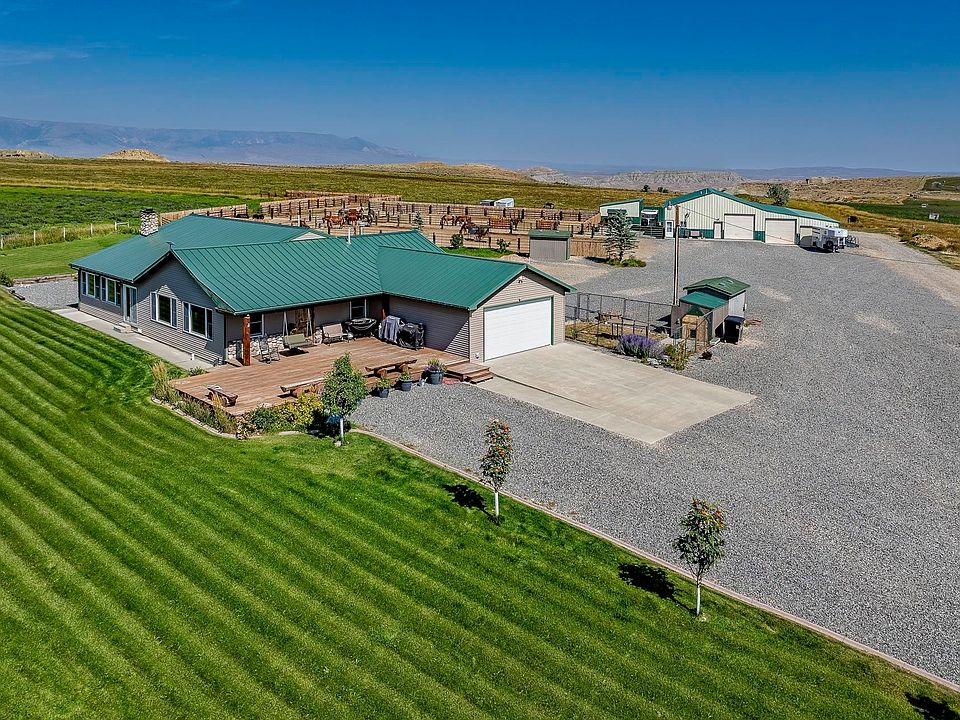 Rare opportunity! This is a turnkey ranch in the Heart Mountain area, with end of the road privacy, irrigated hay production, pasture, expansive corral system, and fenced for all classes of livestock. The beautifully maintained, open concept home is 2880 sf, 3 bed 3 bath, with an additional 2160 sf of mostly finished basement living space, and features a large rock fireplace, wood floors, vaulted ceilings, and large windows with incredible mountain views. The 4140 sf barn/shop includes a 621 sf. 1bed 1bath apartment, tack room, saddling stalls, storage area, and much more! Additionally, there is lean-to hay storage, chicken coop, dog kennels, storage shed, and a large deck and fire pit area for barbeques or just hanging out by the campfire. Don't miss the opportunity to own your Wyoming dream!