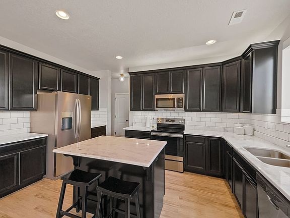 TWO family rooms for plenty of space! We planned on living here for a long time so we upgraded everything, added custom cabinetry in the master bath, an RV pad on the side yard, and a giant patio in the back. 9 foot ceilings on the main floor. The yard was just put in. There is no basement.