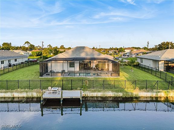 Welcome to this truly enchanting retreat nestled on this TRIPLE LOT SITE on a fresh water canal in the heart of central Cape Coral. This exquisite property offers a unique blend of modern elegance and classic charm. Step inside to discover a light-filled, open-concept living space with soaring ceilings, large windows, and beautiful tile floors throughout. The spacious layout offers flexibility for both relaxation and entertaining. The gourmet kitchen is a chef's dream, featuring high-end stainless-steel appliances, granite countertops, and ample cabinet space. It's perfect for preparing delicious meals and hosting dinner parties. Retreat to the master suite, a serene haven with two spacious walk-in closets and a luxurious en-suite bathroom, complete with a soaking tub and a separate car wash shower. The backyard oasis features a tranquil patio, and a stunning pool and spa where you can relax and unwind. The outdoor kitchen with gas grill is a perfect space for enjoying the beautiful weather and hosting gatherings with family and friends. With its prime location, elegant design, and thoughtful details, this home offers the best of city living with all the comforts of home. Schedule a viewing today and experience this exceptional property.