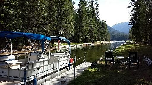 The perfect place to get away from it all! This charming Pan Abode cabin has stunning lake and mountain views. Private dock on protected canal is just steps away from the screened in cabana. Perfect for eating al fresco or simply relaxing with a good book. Oversized two car garage plus a storage shed are perfect for storing all of your toys. The front deck takes advantage of the views. Many of the furnishings stay.