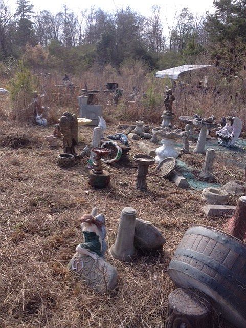 J&M concrete lawn ornaments business for sale, located on busy hwy, price includes over 75 stone fountains, animals, statuary, with concrete molds on site.