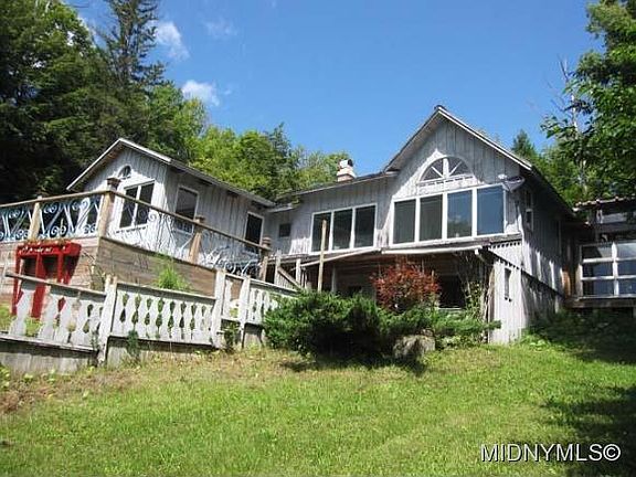 Beautiful Year round home or retreat overlooking Stewarts Landing. Well maintained yard with one stall detached garage. This is the ultimate Adirondack style retreat with natural woodwork to big windows overlooking the water, and a large wrap around, and step down deck that overlooks the yard.