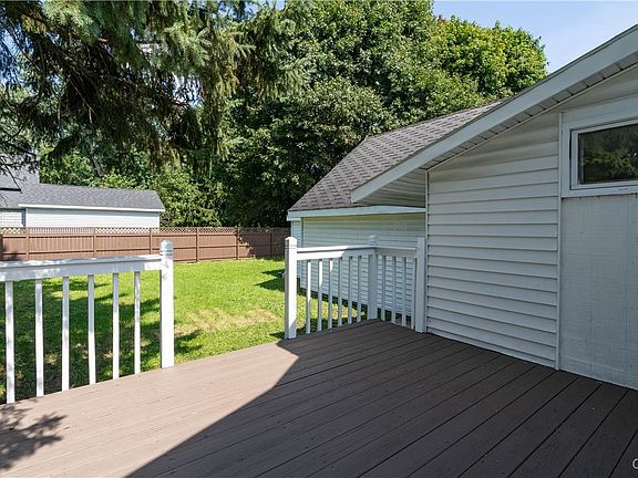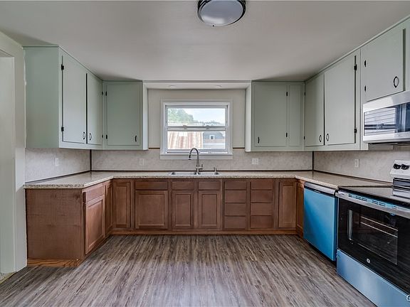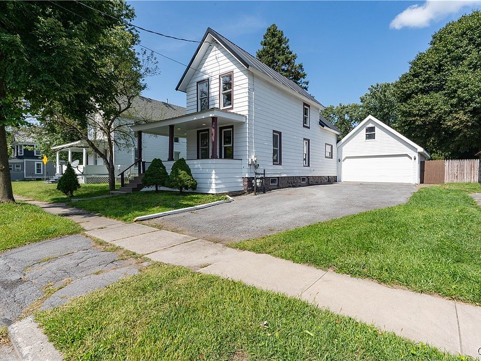 Beautiful and newly renovated three bedroom home now available! Welcome home from the beautiful open front porch that awaits you! Enclosed front entry leads to beautiful first floor with new floors, fresh paint, and new appliances! Lovely large kitchen with space for dining. Spacious front living room and central room perfect for formal dining or second living room space! First floor laundry room with access to incredible attached garage with extra space and large fenced in yard! Upstairs has three bedrooms and renovated full bath. Totally turn key with new electrical, new plumbing, new furnace and new metal roof going on garage. This home is totally turn key at a phenomenal price and will not last long, fast closing possible!